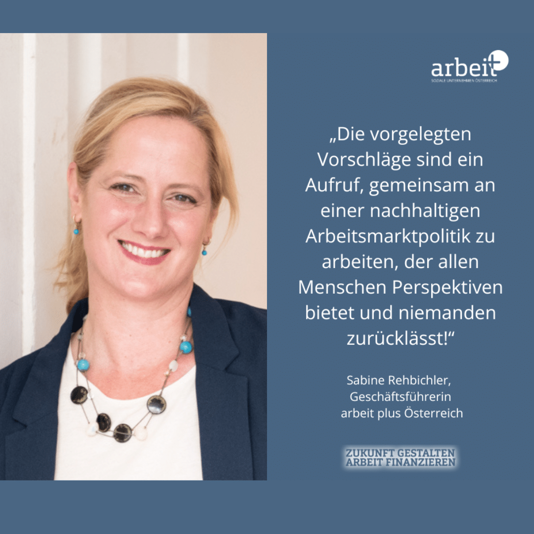arbeit plus ist seit über 35 Jahren das unabhängige, österreichweite Netzwerk von 200 gemeinnützigen Sozialen Unternehmen an knapp 500 Standorten, die mit Beratung, Qualifizierung und Beschäftigung benachteiligte Menschen beim beruflichen (Wieder-)Einstieg unterstützen. Insgesamt erhalten jedes Jahr 25.000 Menschen eine befristete Arbeitsstelle und rund 200.000 Menschen eine Beratung in den arbeit plus-Mitgliedsunternehmen, viele weitere tausende arbeitssuchende Menschen werden durch Trainings und Qualifizierungsangebote unterstützt. Im Sinne der aktuellen gesellschaftlichen und sozialpolitischen Herausforderungen am Arbeitsmarkt vertritt und stärkt arbeit plus die Position der Sozialwirtschaft und der Sozialen Unternehmen in Österreich und in Europa und zeigt sozial inklusive und ökologische Wege von Arbeit und Wirtschaft auf.